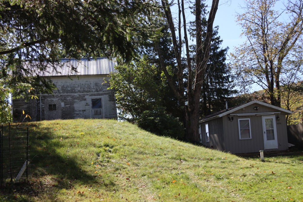 That up close tree is the “bee tree”. Or at least, it was when I was a kid. The old small barn/garage thing on the right was always there. Ever since I can remember. That mostly roof’d thing back and to the left? That wasn’t, but it’s been sitting like that for some time now. In fact, I went back in time looking for images of the house that once stood in the empty foreground of the picture, and found an honest-to-god street view of this spot. And guess what?